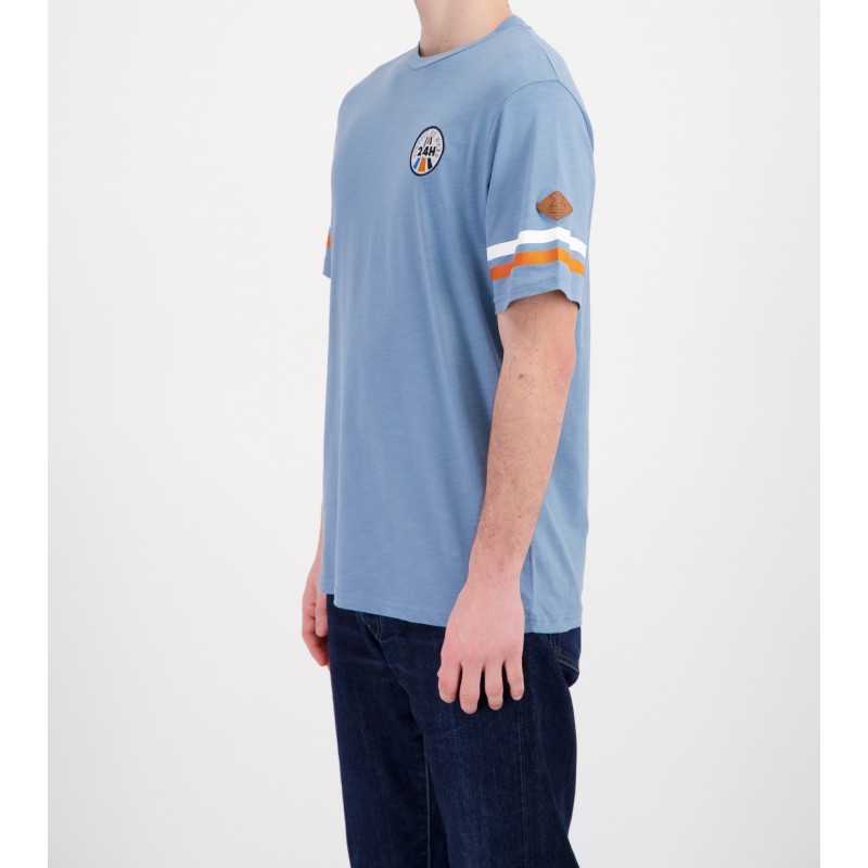 Tee shirt Legende 24H jersey flammé, logo 24H patch cœur, manche droite, rayures imprimées bas de manche patch cuir.