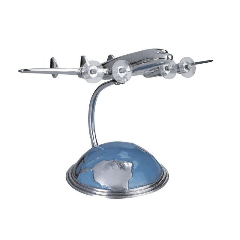 Réplique en métal d'un Constellation, sur un support en demi spère représentant les continents. Décor de bureau, en aluminium poli à la main.