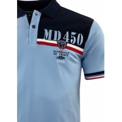 Polo 100% coton PIMA maille piqué - Bleu ciel, empiècement superposition de coton, bleu, blanc, rouge.
