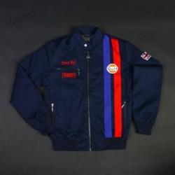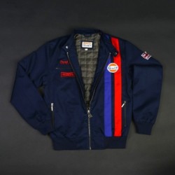 Pour célébrer le cinquantième anniversaire de la première victoire d’une voiture Gulf, mais aussi les cinq courses remportées au Mans par Derek Bell, ambassadeur de GRANDPRIX ORIGINALS, ce nouveau blouson en toile aux couleurs de Gulf rappelle la combinaison de Derek. Disponible uniquement cette saison et en édition limitée, ce blouson Signature Derek Bell est fabriqué à partir de coton premium, bleu marine ou blanc cassé. Une tirette en forme de pédale perforée équipe la fermeture Eclair et la doublure intérieure est imprimée d’une image de Derek Bell en tenue de pilote. Marchez dans les pas du vainqueur !
