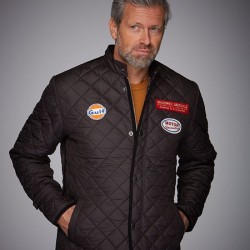 Black is beautiful ! Le fameux blouson matelassé de GPO est maintenant disponible en noir ! Il allie une coupe généreuse – mais pas trop large –, un matériau doux et un toucher très agréable avec les logos historiques du sport automobile et un badge « driver » sur la manche. Il attire l’œil ! Le passepoil doux en velours côtelé et la fermeture Eclair cachée derrière la boutonnière ajoutent confort et aspects pratiques.100% nylon