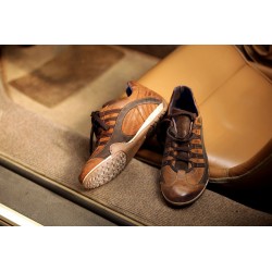 Chaussure de sport en cuir élégante et confortable. Fabriquées à la main en Italie, dans une combinaison de couleurs cognac/choco, et comme d'habitude une bonne qualité de fabrication. 100% cuir avec semelle caoutchouc. GRANDPRIX SNEAKER est la chaussure parfaite pour conduire, se promener ou juste profiter du moment. Elle offre un confort extrême, un excellent grip et une grande souplesse. Cette chaussure en cuir repose sur une semelle 100% caoutchouc qui reprend le dessin d’un pneu racing, et un talon arrondi. Assemblée avec le plus grand soin par un des top fabricants de chaussures d’Italie, elle vous ira parfaitement.