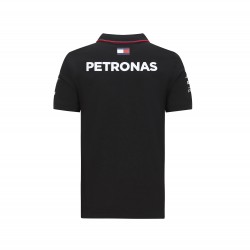 Polo noir du sponsor de l'équipe Mercedes-AMG Petronas Osez un tout nouveau style avec ce polo à la mode de la collection Mercedes. À part des logos obligatoires de l'équipe et des sponsors, il comporte d'autres détails, comme les bandes de couleur sur le col et la patte de boutonnage ou le grand lettrage "Petronas" au dos. collection de l'équipe Mercedes avec les logos des équipes et des sponsors avec bande rayée sur les côtés, le col et le bouton faisant face en 95% coton / 5% élasthanne