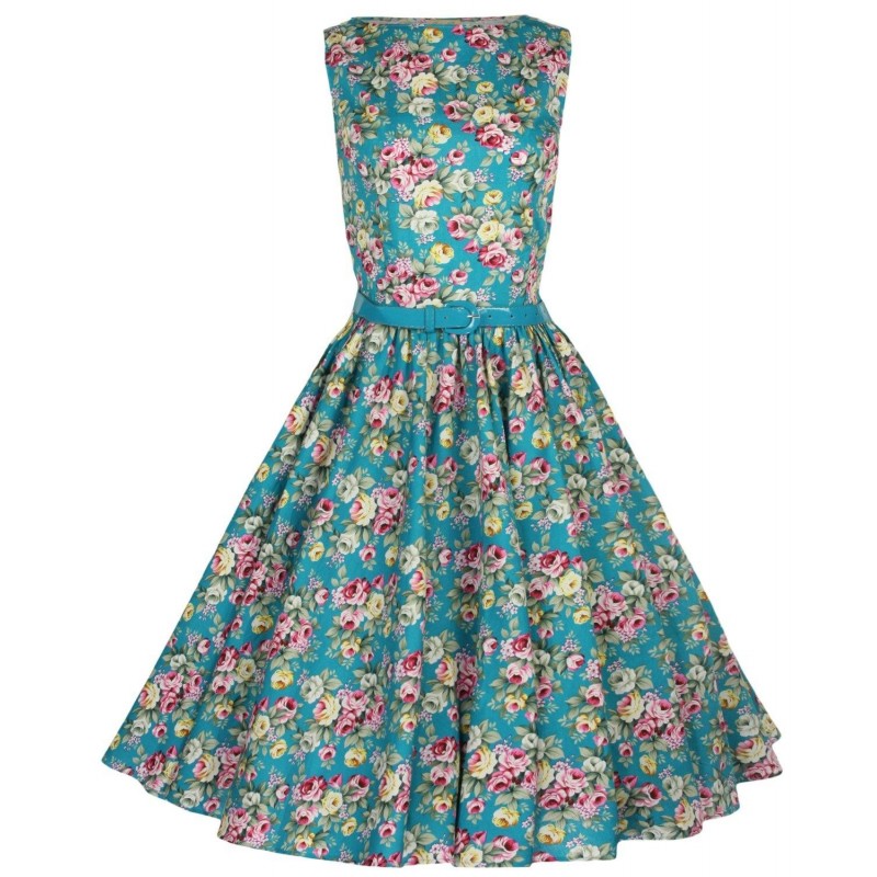 Superbe robe des années 50-60 style Rockabilly,fabriquée en tissu de qualité à un prix raisonnable. A porter lors de vos sorties en classic car ou au quotidien. Coton fleuri coloris turquoise. Livrée avec une ceinture turquoise.